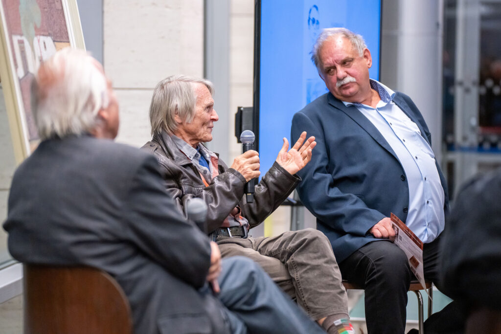 19 órától a MODEM kiállítás záróeseményén nagyszerűen sikerült „Égerházi Imrére emlékezünk” pódiumbeszélgetéssel zárult az este. A résztvevők Velényi Rudolf festőművész, Égerházi Imre közeli barátja és pályatársa és Arany Lajos művészeti író voltak. A beszélgetést ezúttal is Feledy Balázs és Égerházi Attila moderálta, akik maguk is aktívan bekapcsolódtak az emlékezésbe.